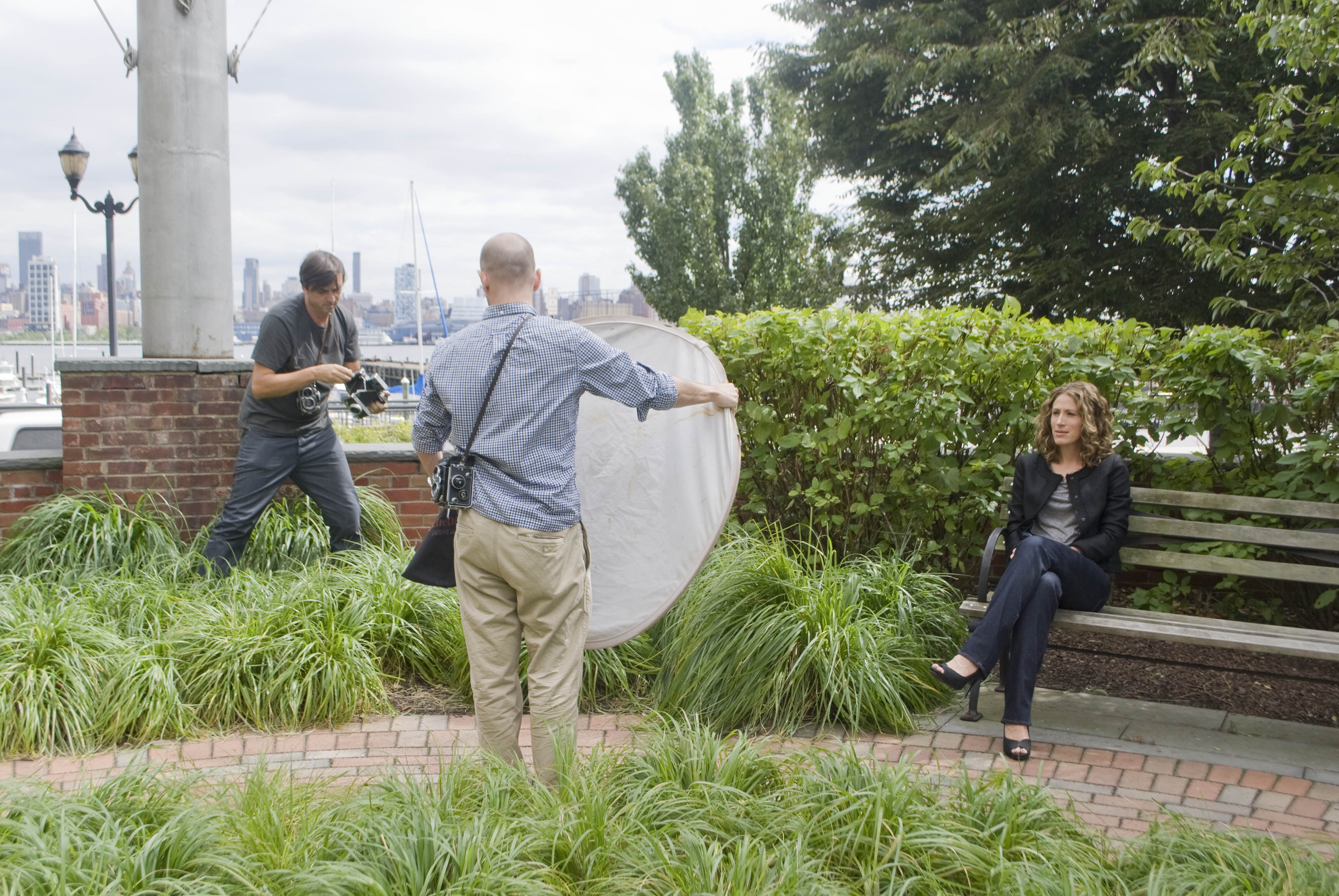 When we were done taking pictures in my apartment, I was told to pick out another outfit because we’d be taking the photo shoot outdoors. You don’t have to tell me twice! I had been eyeing a super sweet blazer. After a quick change and a touch up on my hair, our merry little band left my apartment and traipsed the streets of Hoboken in search of a place to continue our shoot. Fortunately, they liked the park that I often sat at on Saturday mornings post-workout, reading the NY Post and drinking coffee.