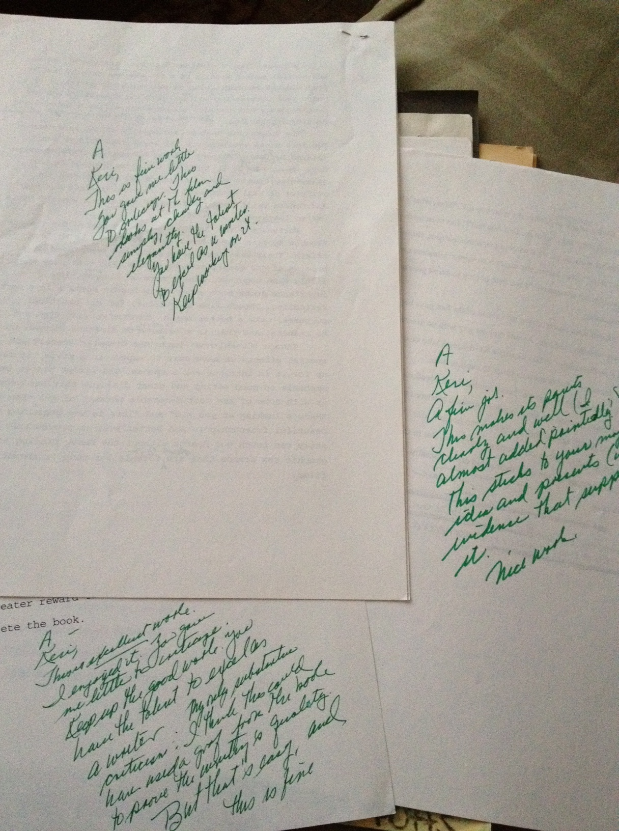He knew I dreamed of becoming a magazine editor and encouraged me at every opportunity to write. Any former student of his can tell you the hallmark of his grading papers was green-penned cursive championing what we did right and what we should improve upon in our writing.  I eagerly read his notes, seeking in them the reinforcement that my talents were passably good.